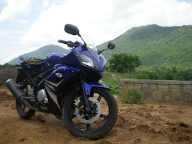 Mithun was kind enough to pillion me on his R-15 and I was a bit surprised at the seat of this thing, it was small and wasn't wide like commuter bike, the footrest was high enough to play drums on your knees :D. That being apart, I was more overwhelmed by the comfort of the seat being a sports bike. We started from 6.30 AM to 5.30 PM and I was on the back of the rider all the time. On a serious tone, the back seat was considered at the time of the designing of the bike, even on a long trip, no back or butt sores, it's like being bike chauffeured the entire trip, it relaxing cool and awesome. Once you have got the comfort zone of the seat, you can actually make an aerodynamic seating with the rider and experience pure speed or cruise (at 90 kmph). There was also a time where we had a slight slip on moss on a road bridge, and another great thing was the foot rest was kept at a right height for me to jump out and get my hands and knees under the bike before it fell on the sides. Unlike the other bikes your foot does lay on the other side way down, it just shrugs at the back of the bike for a quick dismount.
